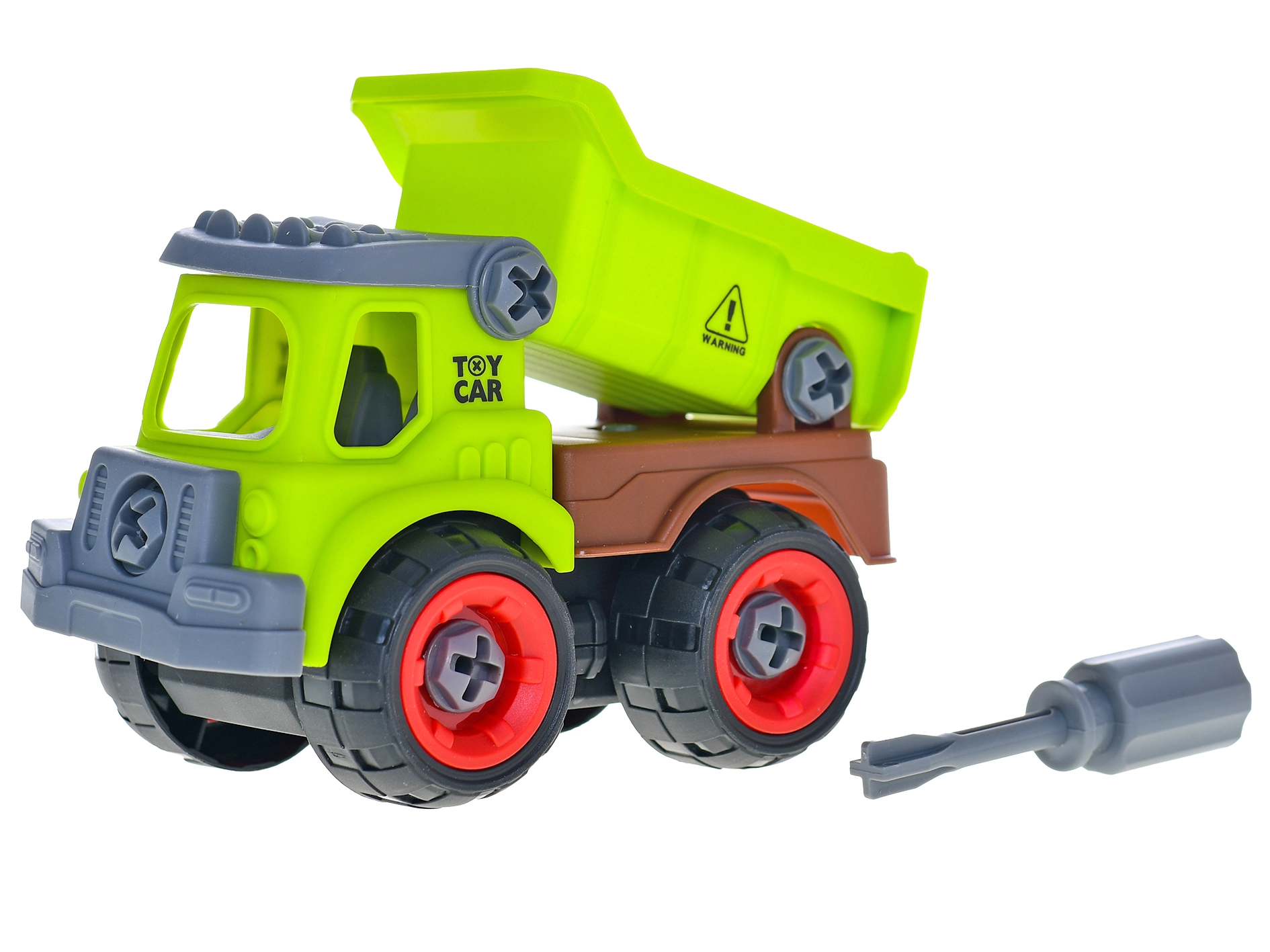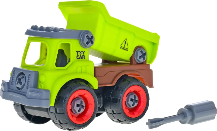 Scopri il divertente ribaltabile avvitabile per piccoli provetti meccanici! Camion giocattolo in plastica lungo 14 cm fornito con cacciavite, così i bambini possono smontare e rimontare facilmente il veicolo. Sviluppa la motricità fine, il pensiero tecnico e grazie al meccanismo a spinta funziona senza batterie. Disponibile in due varianti di colore della vasca – verde e marrone, adatto a bambini dai 3 anni.