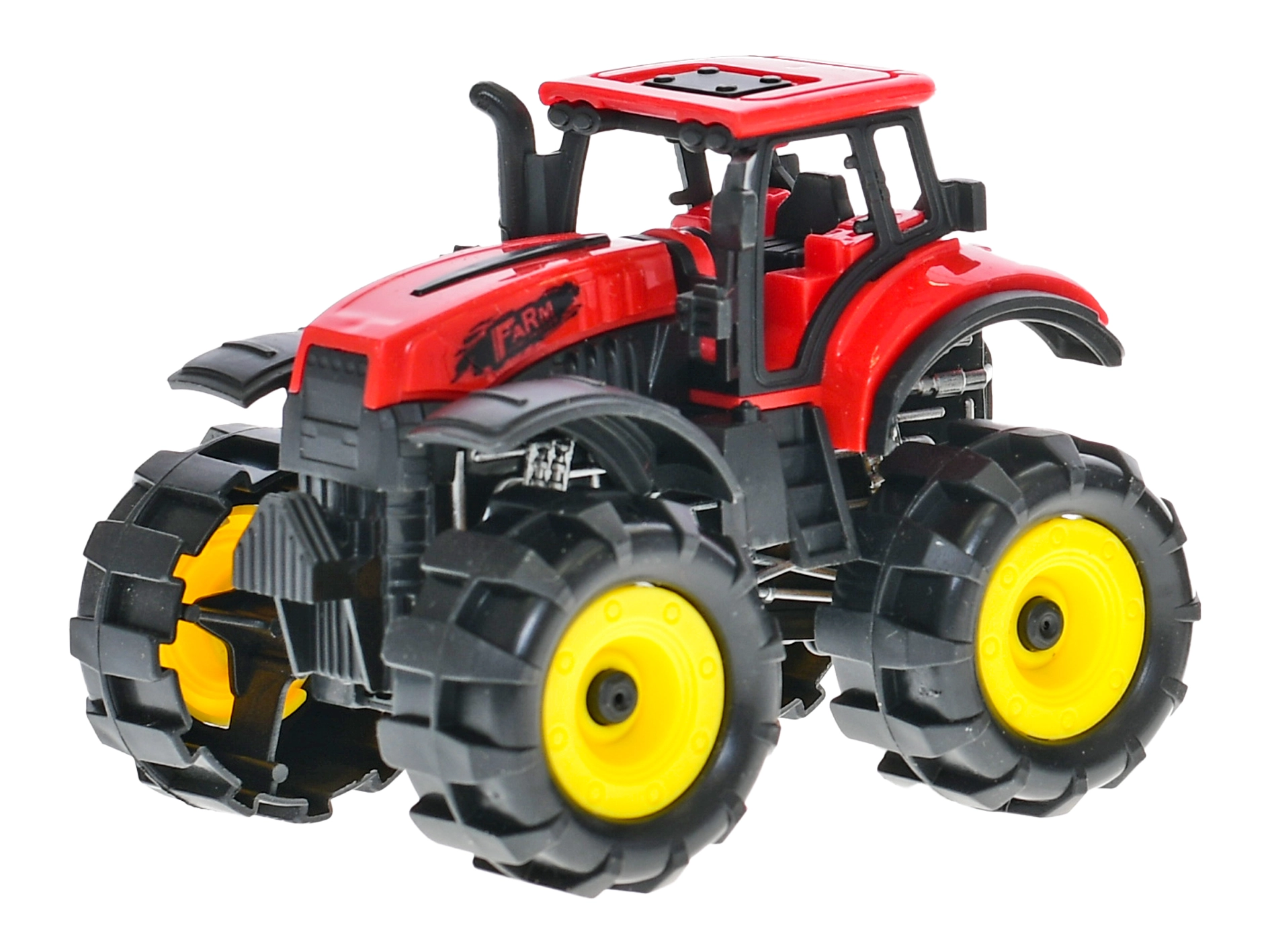 Dopo una leggera carica, grazie al meccanismo a retrocarica il trattore parte autonomamente in avanti, offrendo una gioco autentico da fattoria. Tre varianti di colore – rosso, blu e verde – permettono di scegliere il preferito o di creare un set completo.