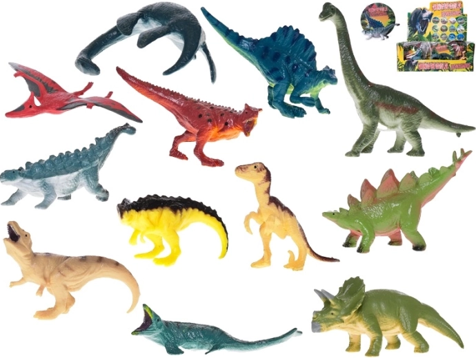 - Pterodattilo, Triceratopo, Brachiosauro, Stegosauro, T‑Rex, Plesiosauro, Carnotauro, Spinosauro, Giganotosauro, Anchilosauro, Velociraptor, Mosasauro