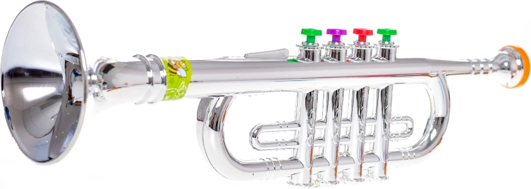 Scopri i primi passi musicali con questa tromba per bambini leggera e resistente lunga 37,5 cm. Grazie alla lucente finitura argentata e ai 4 tasti colorati, incoraggia i bambini a suonare ed esplorare i suoni. Realizzata in plastica di alta qualità, è facile da impugnare dalle mani più piccole ed è ideale per sviluppare orecchio musicale, motricità e creatività.