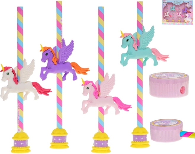 Set di matite Unicorno con gomma e temperino, 4 pz