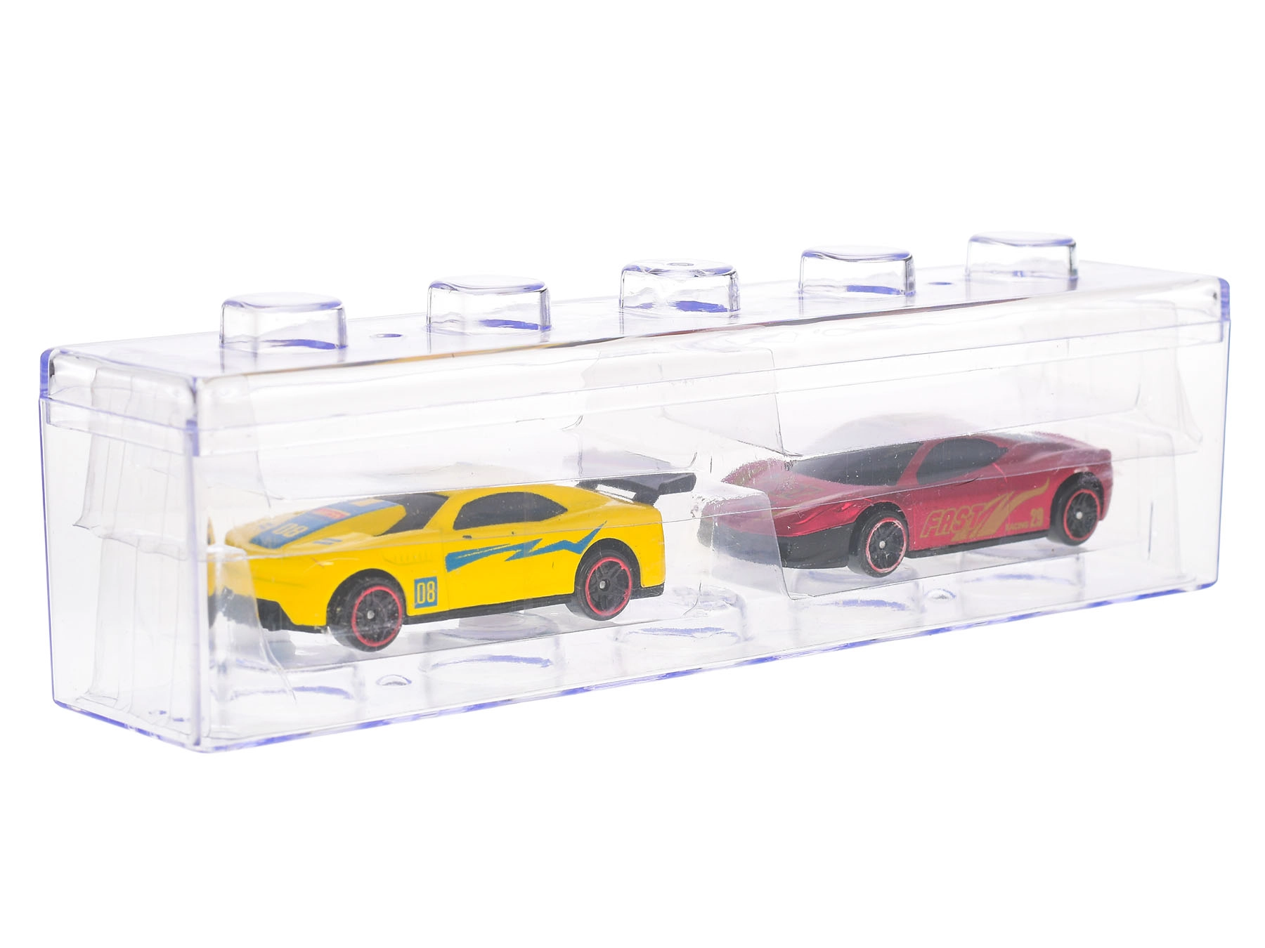 Il set ROADBLASTERS offre due macchinine da corsa dettagliate in metallo di alta qualità. Grazie alla struttura robusta, resistono anche a una guida più movimentata e le dimensioni compatte sono ideali per le manine dei bambini e per giocare fuori casa. La scatolina trasparente facilita il trasporto e la conservazione sicura.