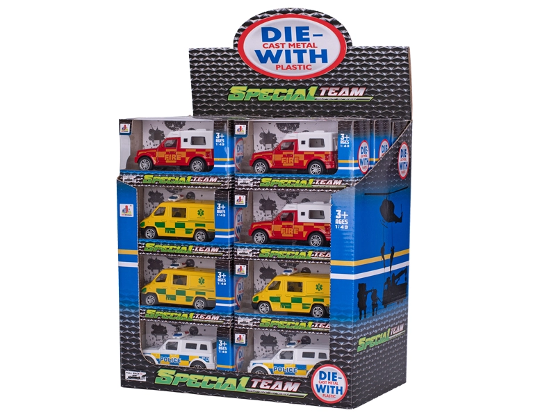 - 3 veicoli iconici: ambulanza, camion dei vigili del fuoco e auto della polizia