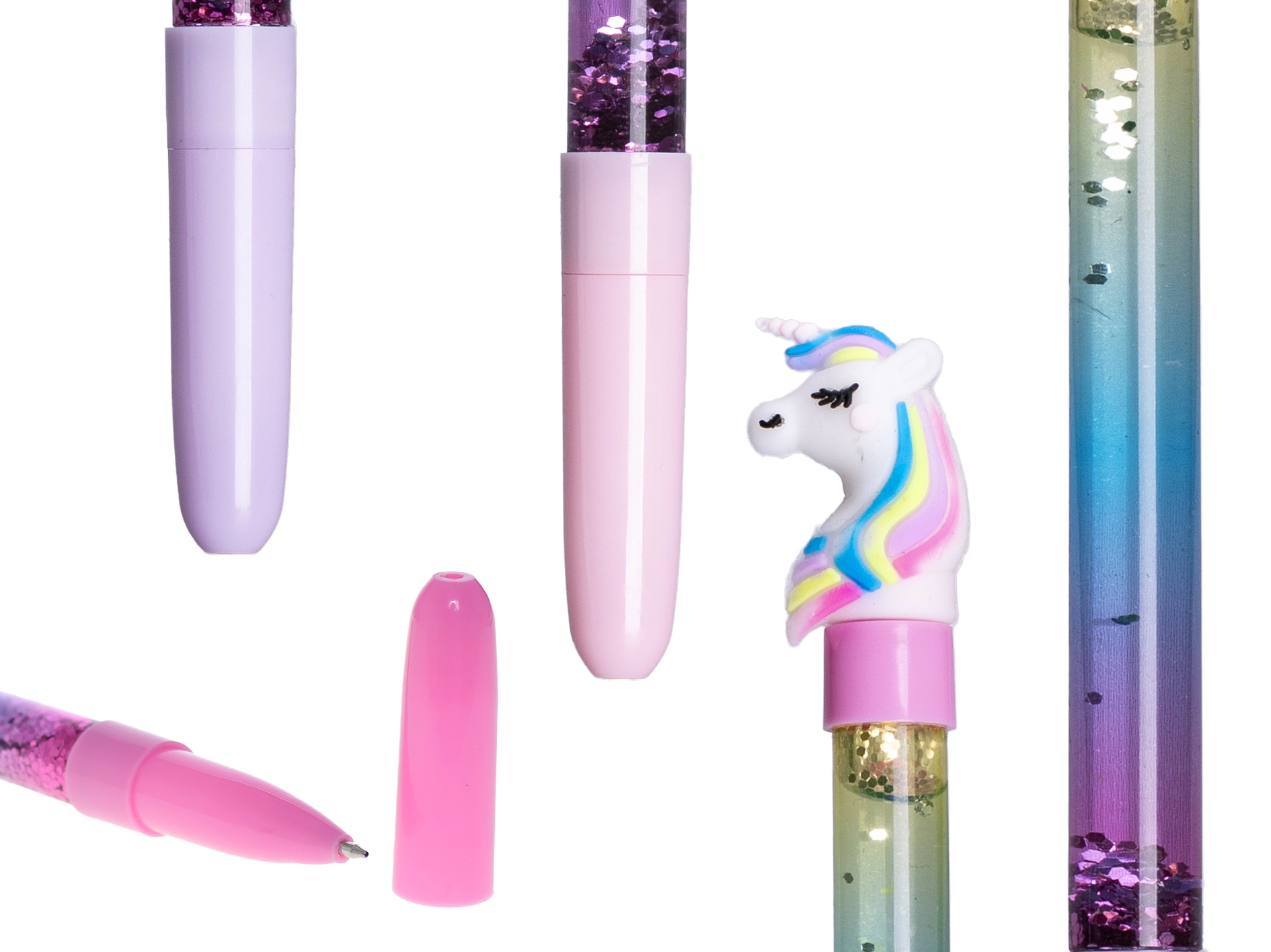 Questa penna stilosa con un tenero unicorno trasforma ogni scrittura in un divertimento. Grazie al corpo trasparente riempito con liquido e glitter, a ogni movimento della penna si crea un incantevole effetto scintillante. La penna è comoda da impugnare ed è ideale per la scuola, per appunti e come piccolo regalo.