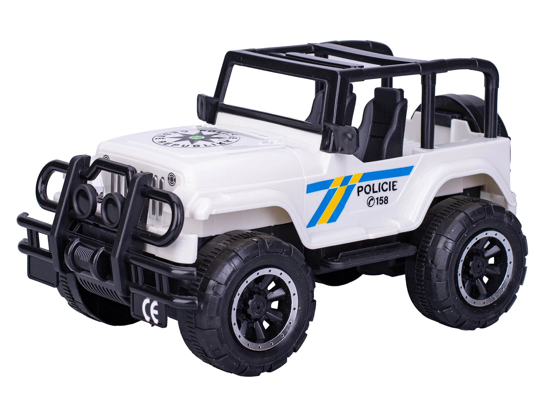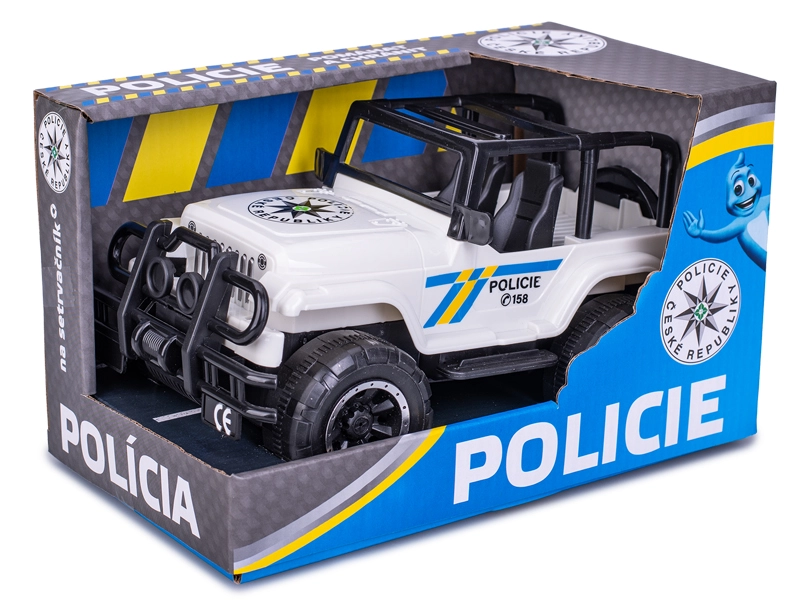 Dinamico jeep della polizia con trazione a inerzia lungo 22,5 cm, perfetto per i piccoli eroi delle missioni di salvataggio. Offre un design realistico ispirato alla Polizia della Repubblica Ceca, una struttura resistente in plastica e un controllo semplice per sviluppare la motricità fine. Regalo ideale in una confezione pratica.