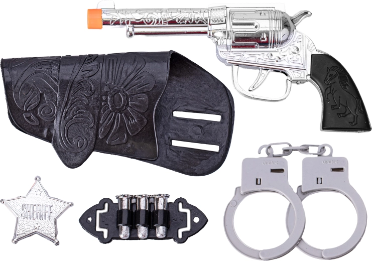 Accendi al massimo la fantasia dei bambini con questo set western per piccoli sceriffi! Il set include una pistola a salve lunga 19 cm, fondina, manette e stella da sceriffo – ideale per giochi di ruolo, carnevale e avventure in casa. Grazie alla struttura in plastica leggera e sicura il set è adatto ai bambini dai 3 anni e rappresenta un ottimo regalo per i piccoli amanti del Selvaggio West.