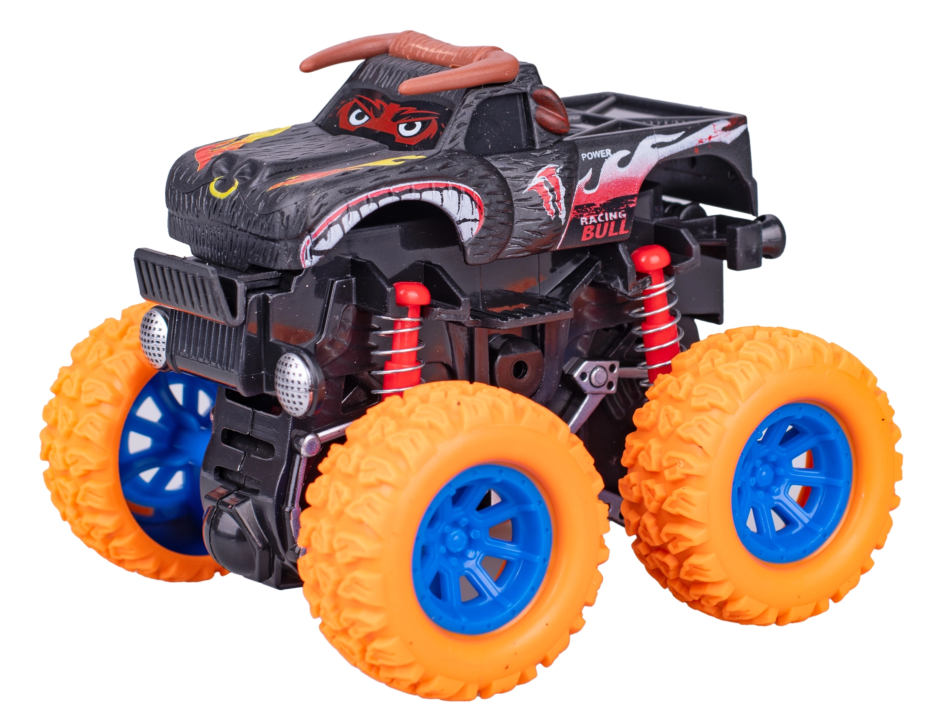 Le ruote grandi e l’assetto rialzato aiutano a superare terreni irregolari, tappeti e piccoli ostacoli. Il giocattolo è fornito su una pratica card per una facile conservazione e come confezione regalo. Sono disponibili quattro colori attraenti – verde, rosso, arancione e viola – per rendere le gare ancora più divertenti.
