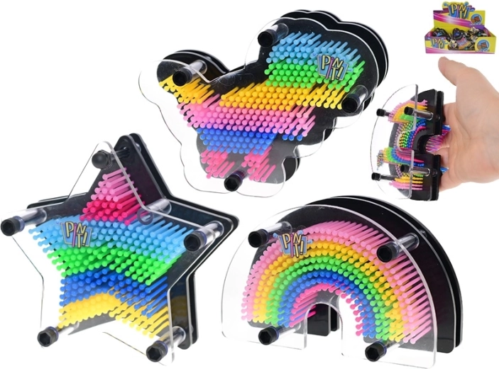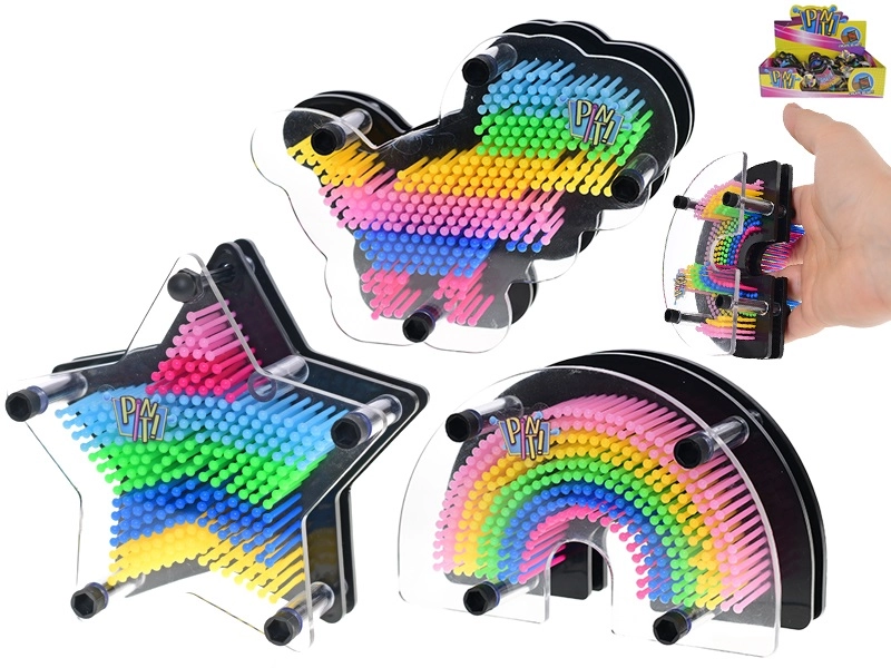 Il giocattolo Toys & Trends Pin It! offre un modo unico per esprimere creatività e fantasia. Basta premere una mano, un piccolo oggetto o il profilo del viso sulla superficie a perni e osservare come prende forma un'impronta 3D in rilievo. Grazie alle dimensioni compatte, è ideale sia per giocare a casa che in viaggio.