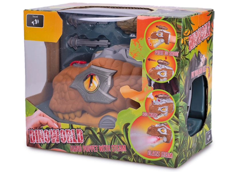 Trasporta i bambini nel mondo preistorico con un giocattolo che prende vita sotto i loro occhi. La testa di dinosauro DINOWORLD, grazie alla combinazione di vapore, effetti luminosi e sonori, crea un’atmosfera coinvolgente e stimola il gioco creativo e il racconto di avventure personali.