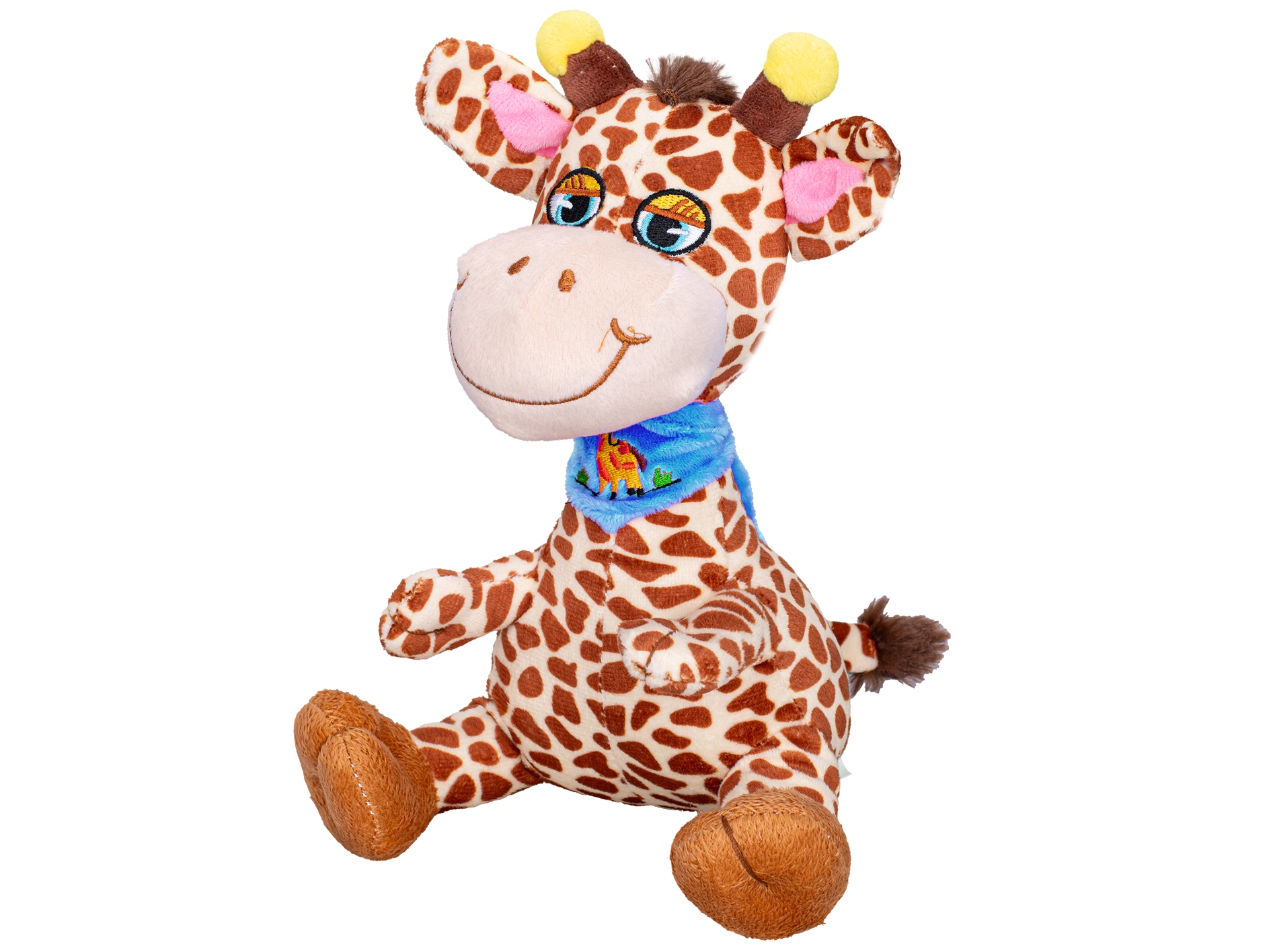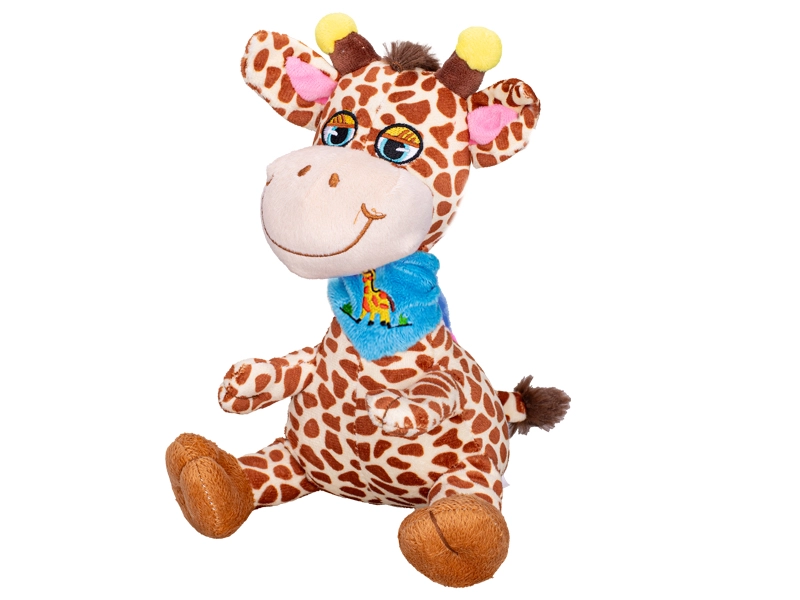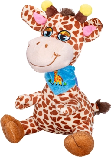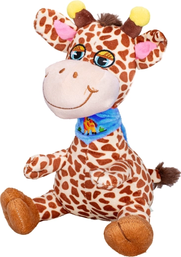 Dolcissima giraffa di peluche alta 20 cm, l’ideale come primo giocattolo per i più piccoli. Realizzata in peluche morbido e vellutato, ha un sorriso allegro e un design seduto stabile. Disponibile in due varianti con fazzoletto – azzurro o rosa – per una scelta facile secondo i gusti. Adatta dalla nascita e perfetta per le coccole e in viaggio.