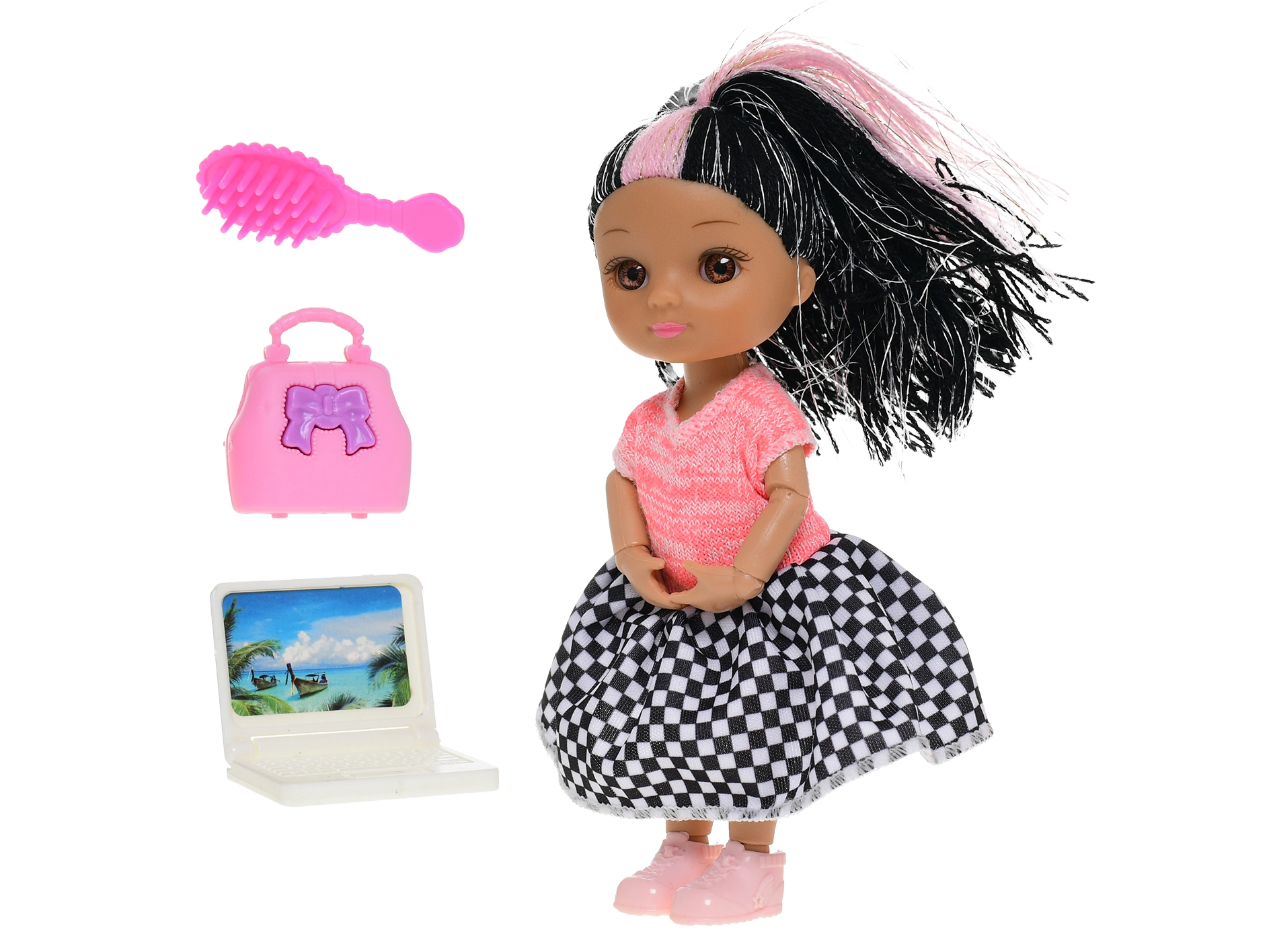 Una graziosa bambola alta 15,5 cm è la compagna ideale per le piccole principesse in viaggio e a casa. Grazie alle sue dimensioni compatte, i bambini possono portarla facilmente ovunque. È disponibile in due varianti di colore – verde e rosa – e la confezione include accessori per ancora più divertimento. Giocare con la bambola stimola creatività, immaginazione e sviluppa la motricità fine. Adatta ai bambini da 3 anni.