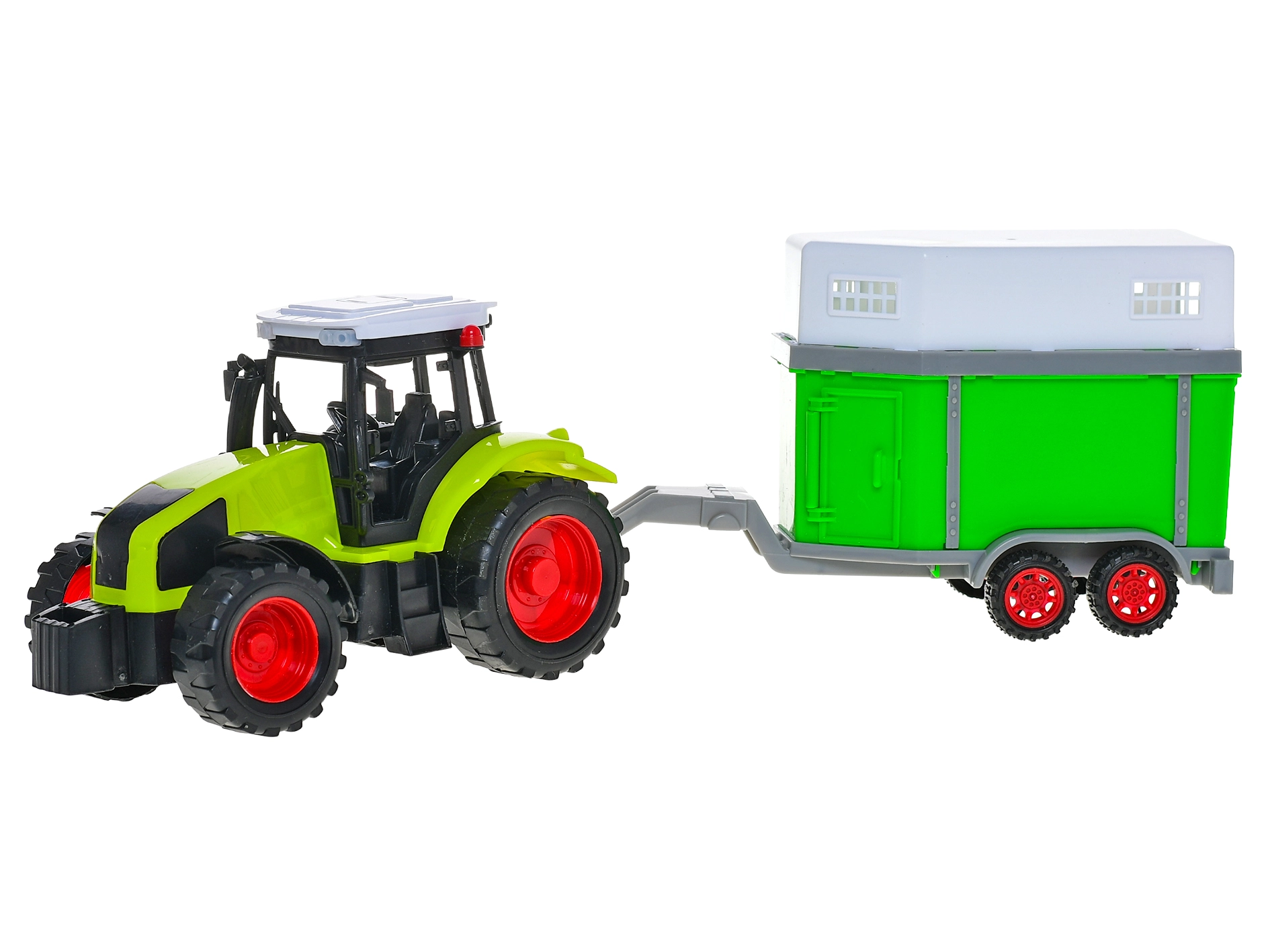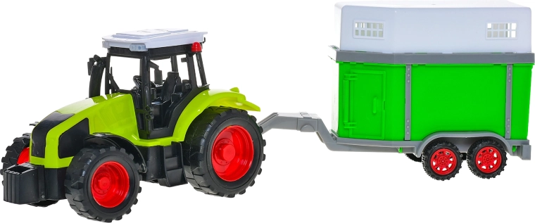 Il trattore con rimorchio per cavalli è il giocattolo ideale per i bambini che amano le avventure in fattoria. Grazie al meccanismo a inerzia, il trattore si muove in modo fluido e imita fedelmente la guida reale, favorendo un gioco realistico e lo sviluppo della fantasia. Il rimorchio è adatto al trasporto dei cavalli, così i bambini possono creare le proprie storie e scenari di vita in fattoria.