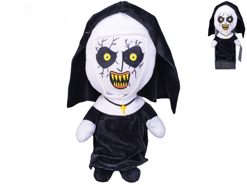 Porta a casa un tocco di tensione con la peluche di The Nun, che riproduce fedelmente l’iconico aspetto della suora del film. Dettagli accurati, occhi gialli penetranti e un’espressione caratteristica la rendono un pezzo di spicco in ogni collezione horror.