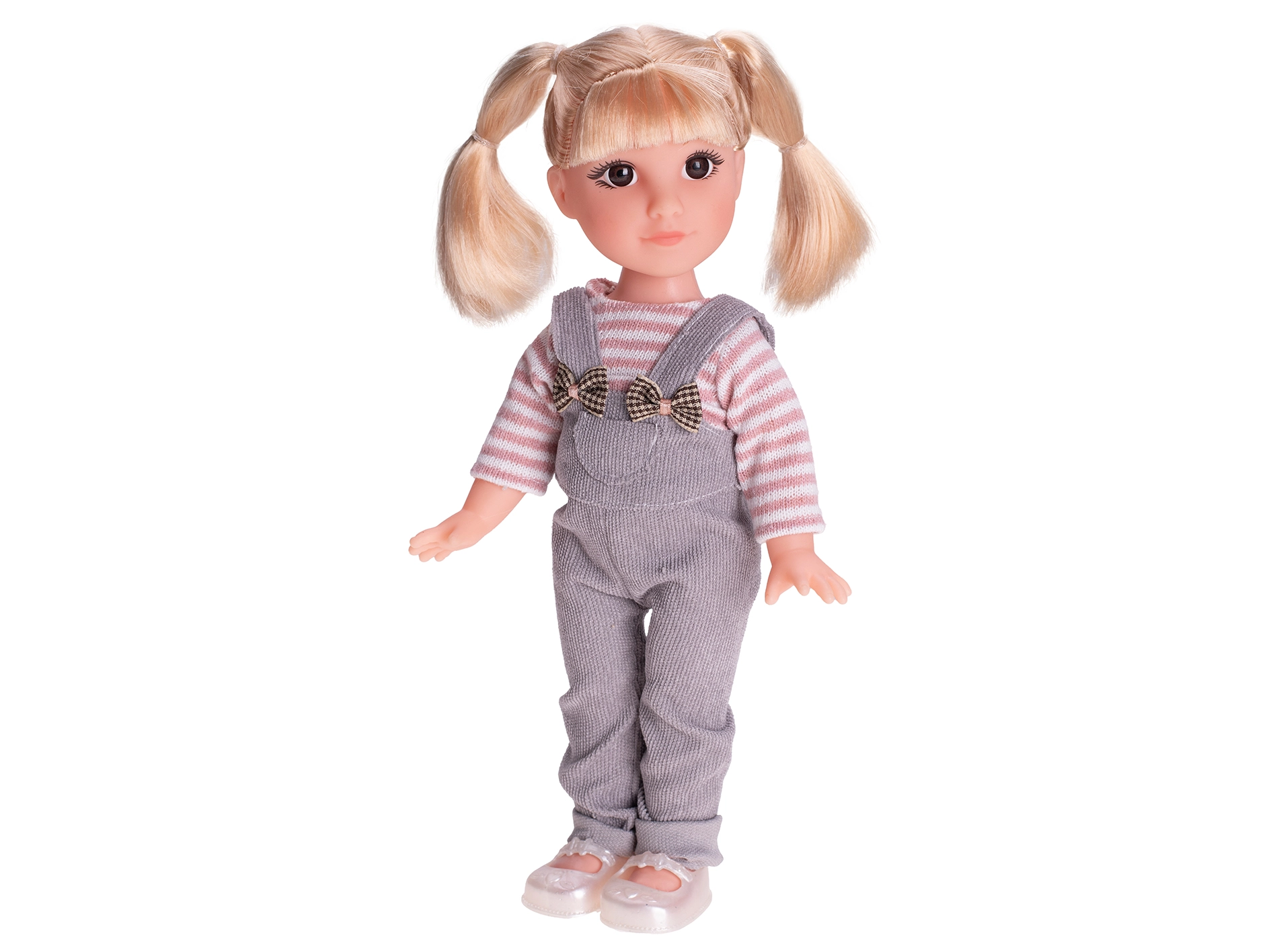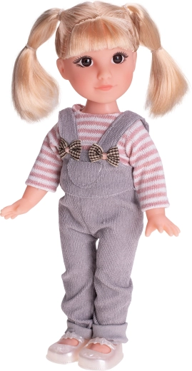 Questa graziosa bambola alla moda con corpo in plastica rigida e lunghi capelli biondi farà felice ogni piccola signorina. Indossa salopette alla moda con fiocchetti e una maglietta a righe. Inclusa una spazzola rosa per pettinare, che favorisce creatività e motricità fine. Realizzazione resistente con manutenzione facile e pratico confezionamento regalo.