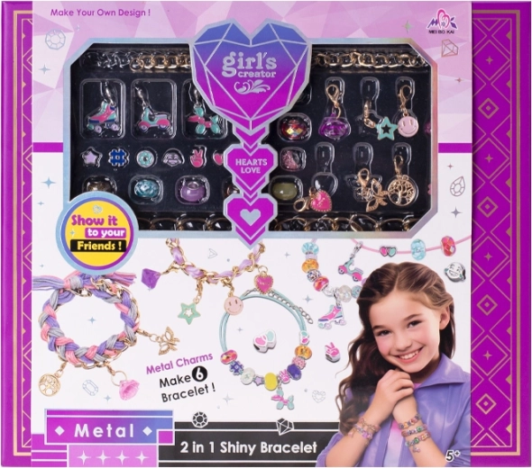Sviluppa la fantasia e la motricità fine dei bambini con il set creativo per realizzare braccialetti con ciondoli in metallo. Grazie ai motivi vari, i bambini possono progettare braccialetti esattamente secondo il proprio stile: dai dolci smiley e cuoricini fino ai temi sportivi come pattini a rotelle o scooter.
