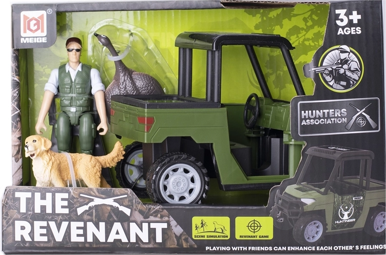 L'auto fuoristrada Revenant con set del cacciatore offre ai bambini scene realistiche di avventure nella natura. Il veicolo dettagliato, la figura del cacciatore e gli animali – un'oca selvatica e un cane da caccia – favoriscono giochi di ruolo, lo sviluppo della motricità fine e della fantasia.