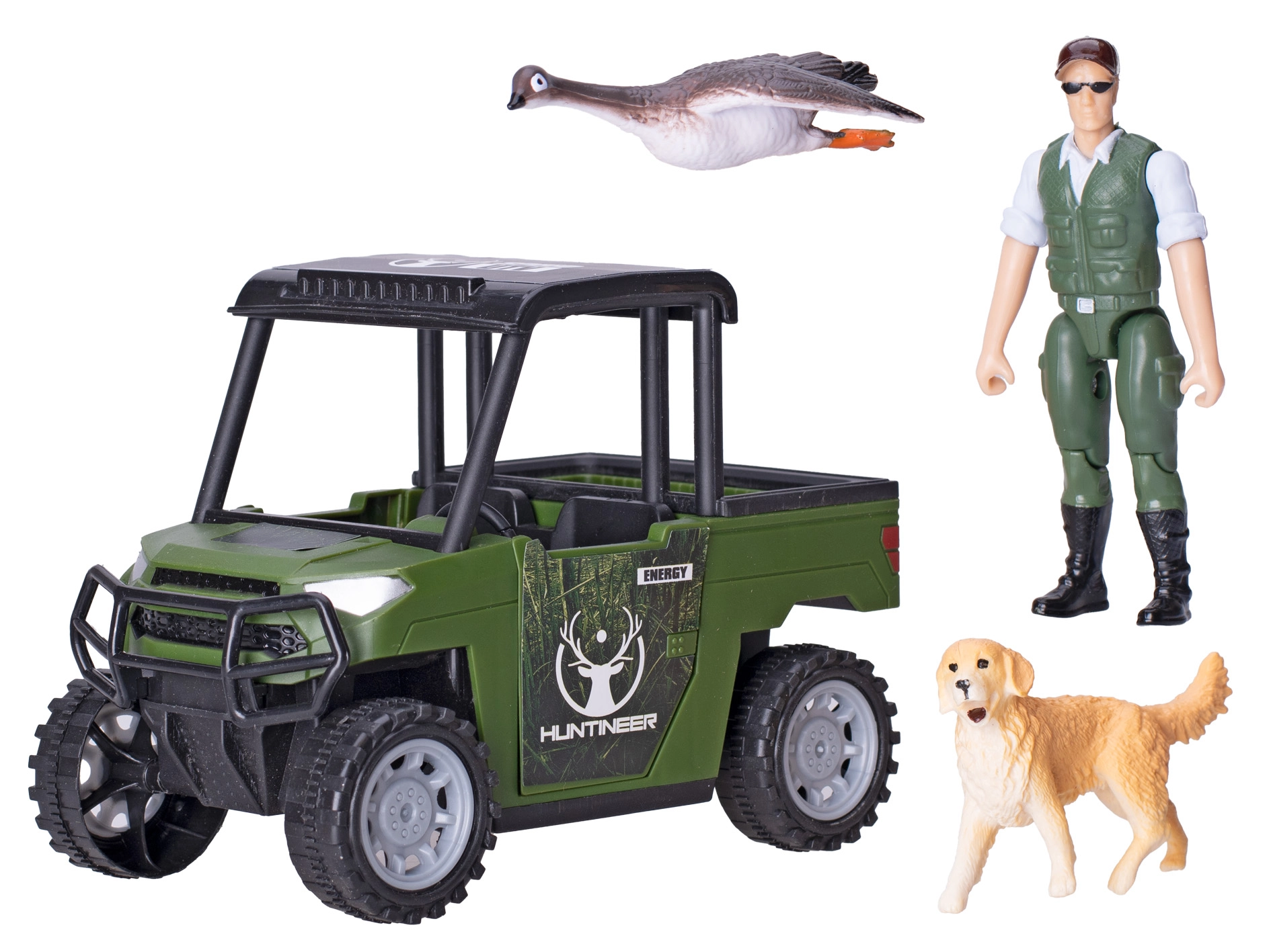 - Ottimo set per giochi d'azione – auto, cacciatore, cane e oca in un'unica confezione.
