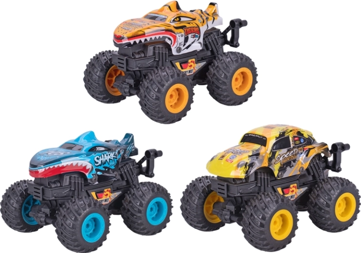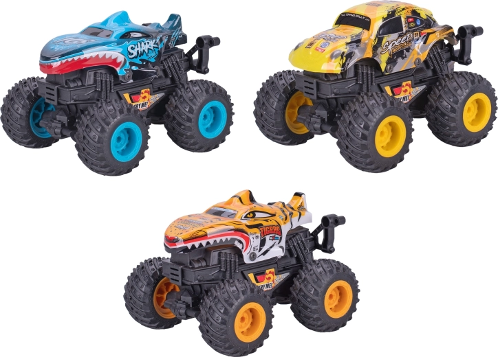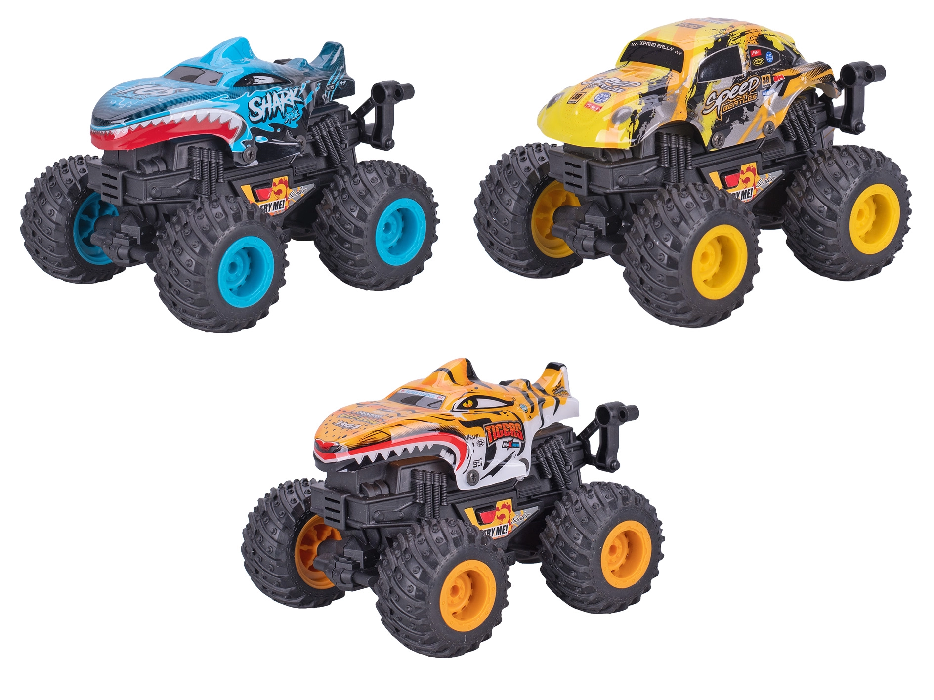 Divertente monster truck Roadblasters lungo 12 cm con motore a inerzia che offre una guida fluida e impressionanti effetti luminosi e sonori. I bambini possono scegliere tra sei varianti originali: squalo, tigre, coleottero, dinosauro, pick-up e SUV. Nella confezione sono incluse 3× batterie LR44, così il divertimento può iniziare subito. Giocattolo ideale per i piccoli appassionati di auto dai 3 anni.