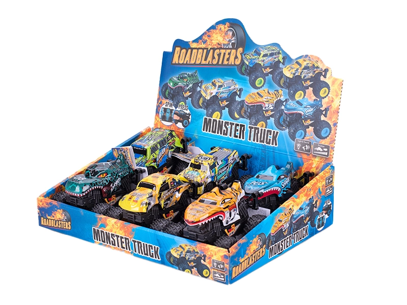 Scopri la guida d’azione con il monster truck Roadblasters! Grazie al meccanismo a inerzia, il veicolo parte in modo fluido e realistico, aumentando l’esperienza di gioco. Gli effetti luminosi e sonori integrati aggiungono drammaticità al gioco e i bambini si divertiranno sia in casa che all’aperto.