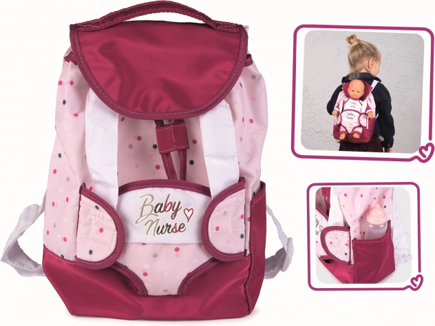 Il portabambole con spazio di archiviazione può essere indossato comodamente sulla schiena e grazie ai lacci regolabili e alla copertura fissata con velcro, nulla si perde durante i viaggi. Sul lato c'è un tascino per la bottiglia delle bambole. Le cinghie dello zaino sono regolabili e possono essere adattate alla dimensione del bambino.