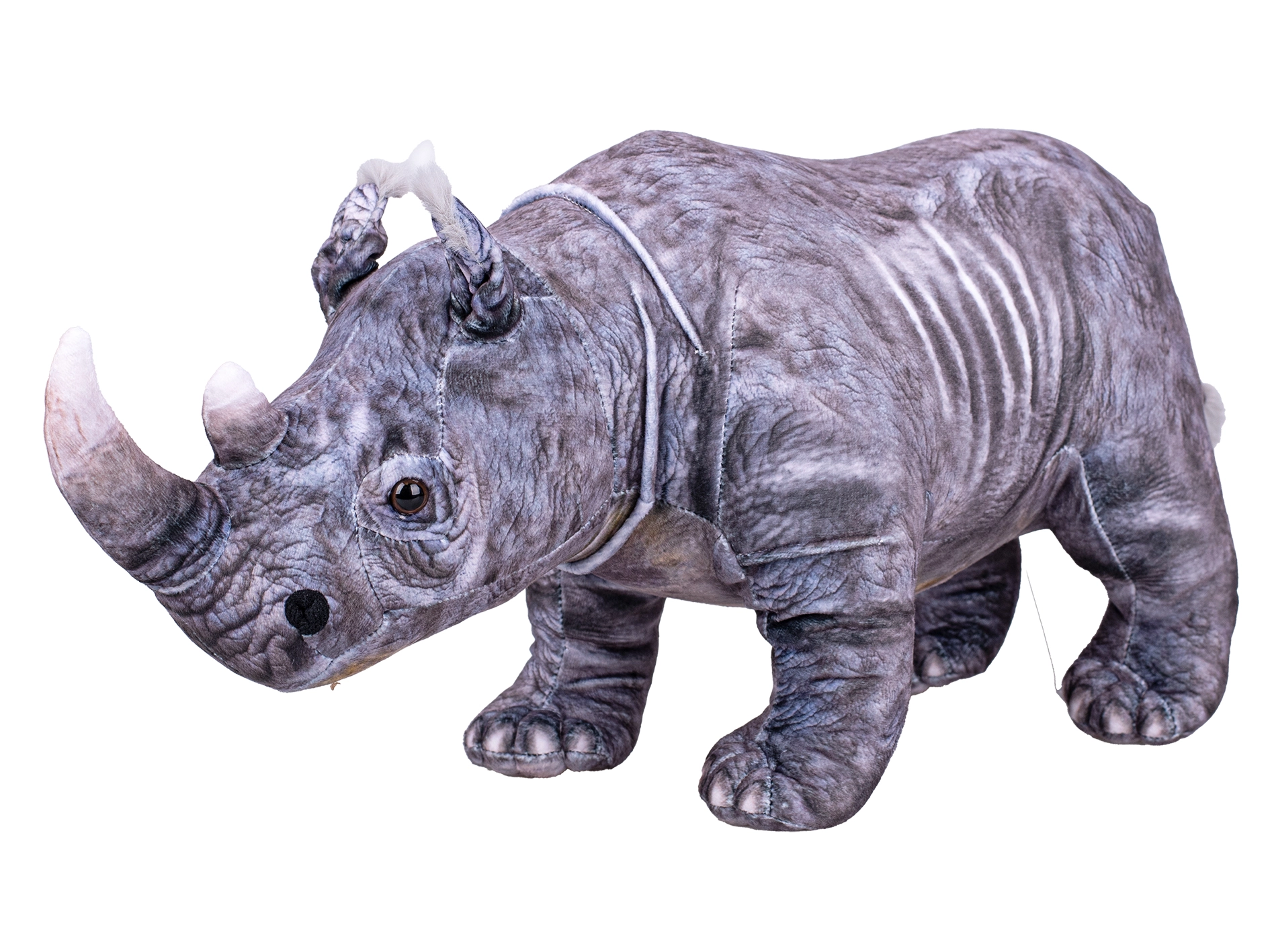 Un rinoceronte bianco di peluche carino e allo stesso tempo realistico, lungo 47 cm, che farà felici piccoli e grandi amanti degli animali. Ha una posizione stabile, in piedi, un materiale morbido e soffice, sicuro fin dalla nascita, ed è perfetto sia per giocare sia come decorazione stilosa per la cameretta.