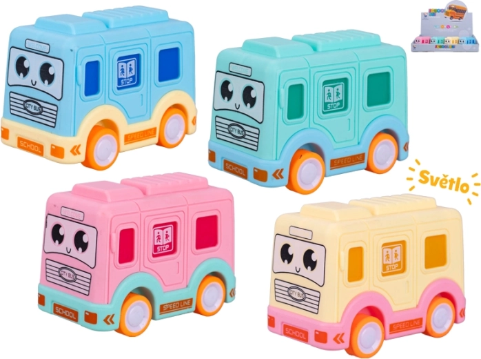 Giocattolo compatto per piccoli conducenti: questo autobus lungo 8,5 cm offre pensione a retrocarica per un movimento fluido in avanti ed effetti luminosi per un divertimento ancora maggiore. Ideale per bambini dai 3 anni, supporta lo sviluppo della motricità fine e della fantasia. Disponibile in 4 colori – blu, rosa, verde e giallo.