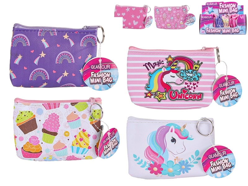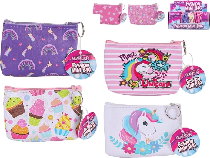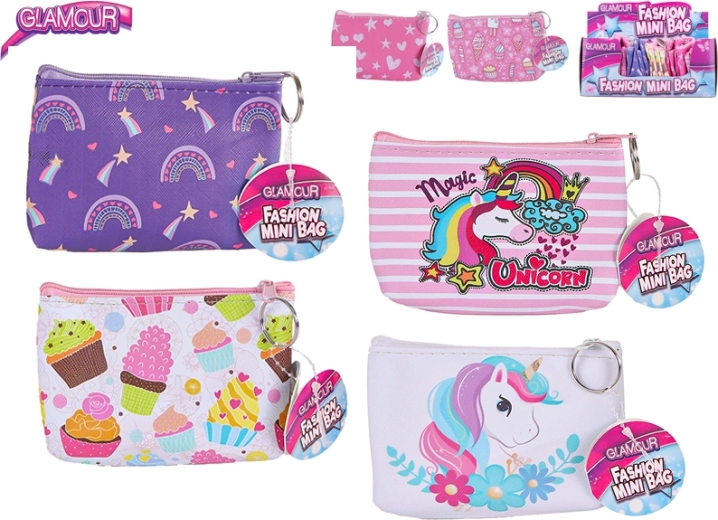 Il portafoglio Glamour, elegante e pratico, con dimensioni 13 × 9 cm è il compagno ideale per tutti i giorni. Grazie alle dimensioni compatte entra facilmente in borsa o in tasca e la cerniera sicura protegge i tuoi piccoli oggetti. Offre sei design giocosi con motivi di gelati, unicorni, arcobaleni e cuoricini ed è adatto per bambini dai 3 anni.