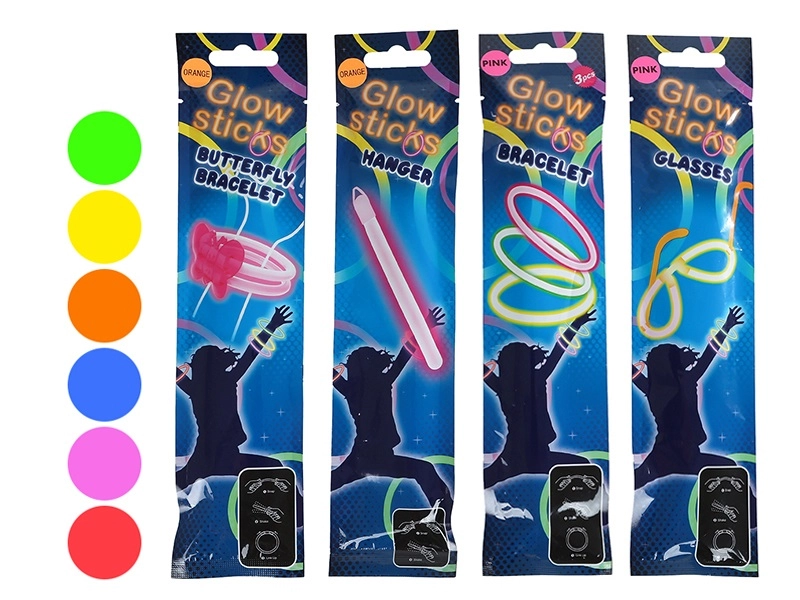 Illumina ogni festa con i versatili bastoncini luminosi Toys&Trends. Nella confezione trovi quattro divertenti varianti – bracciale a farfalla, bracciale classico, occhiali e bastoncino da appendere – per una creatività senza limiti. Si attivano facilmente piegandoli e brillano in sei colori vivaci. Ideali per party, festival ed eventi per bambini. Lunga durata della luce, facili da usare e plastica leggera e sicura per bambini dai 3 anni (con supervisione).