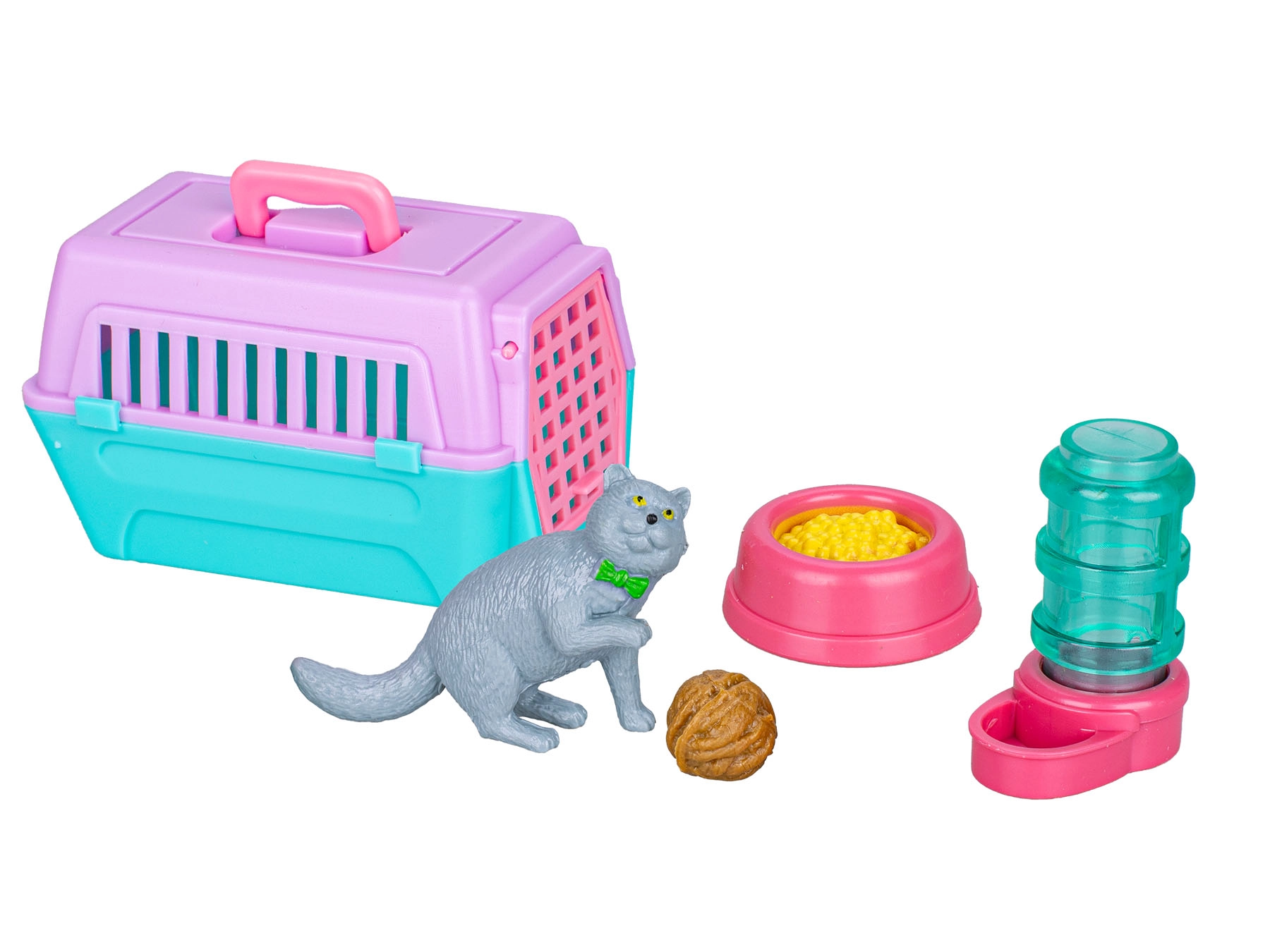 Scopri il mondo della cura degli animali domestici con il set di gioco Gatto con trasportino e accessori Toys&Trends. La figurina del gatto da 7,5 cm, il leggero box di trasporto e gli accessori tematici consentono ai bambini di imitare situazioni reali – dall’alimentazione al gioco e ai viaggi. Grazie alle dimensioni compatte della confezione, il set si ripone facilmente e si porta ovunque.