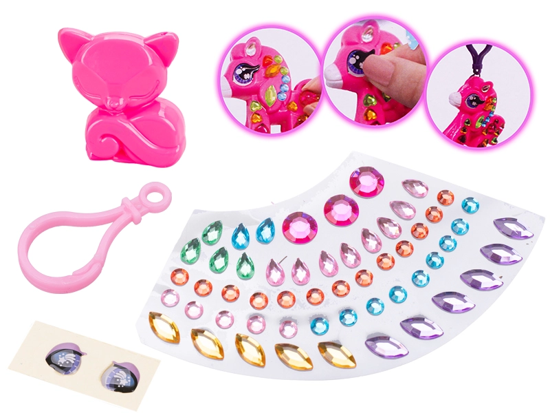 Questo set glamour è ideale per i piccoli creativi che amano realizzare e personalizzare accessori. Nella confezione trovi tutto il necessario – animaletto in plastica (6 cm), pratico moschettone per l’aggancio e strass autoadesivi colorati inclusi adesivi per gli occhi. La decorazione è semplice e divertente; il risultato è un portachiavi originale secondo i tuoi gusti.