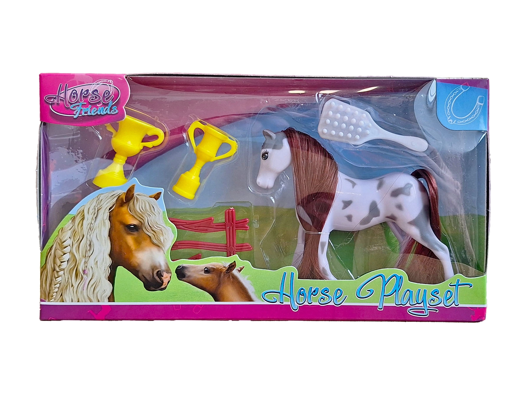 Scopri la magia del mondo dei cavalli con il set giocoso Horse Friends cavallo con accessori. La miniatura del cavallo lunga 9,5 cm è accompagnata da 4 pratici accessori per stimolare la fantasia e creare storie tutte proprie. Sono disponibili 3 varianti di colore – bianco, nero e marrone – fornite in modo casuale. Il giocattolo in plastica di qualità è adatto ai bambini da 3 anni e, grazie alle dimensioni compatte della confezione, si ripone e si trasporta con facilità.