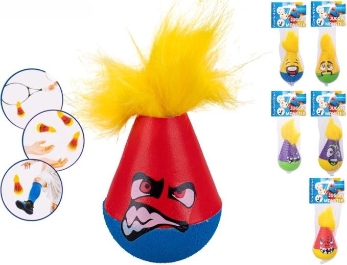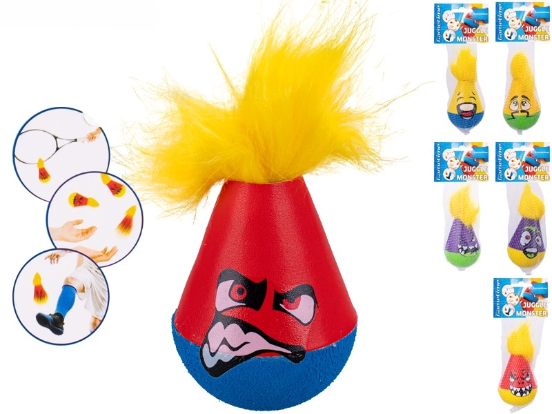La pallina è disponibile in sei divertenti varianti: rossa sorridente, rossa arrabbiata, con baffi, sorridente, viola stupita e viola sorridente. Ogni “mostro” ha il suo carattere, così i bambini possono scegliere facilmente il compagno preferito per lanciare e fare giocoleria. Confezione in rete per un trasporto e una conservazione più semplici.