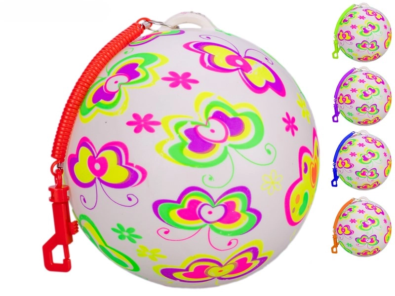 Allegra palla con motivo di farfalle e elastico collegato, porta ai bambini dai 3 anni in su tanto divertimento a casa e all’aperto. Grazie all’elastico la palla è facile da controllare, aiuta a sviluppare coordinazione e motricità fine e grossa e invoglia al movimento attivo. La plastica resistente e il diametro di 21 cm garantiscono una presa comoda e una lunga durata.