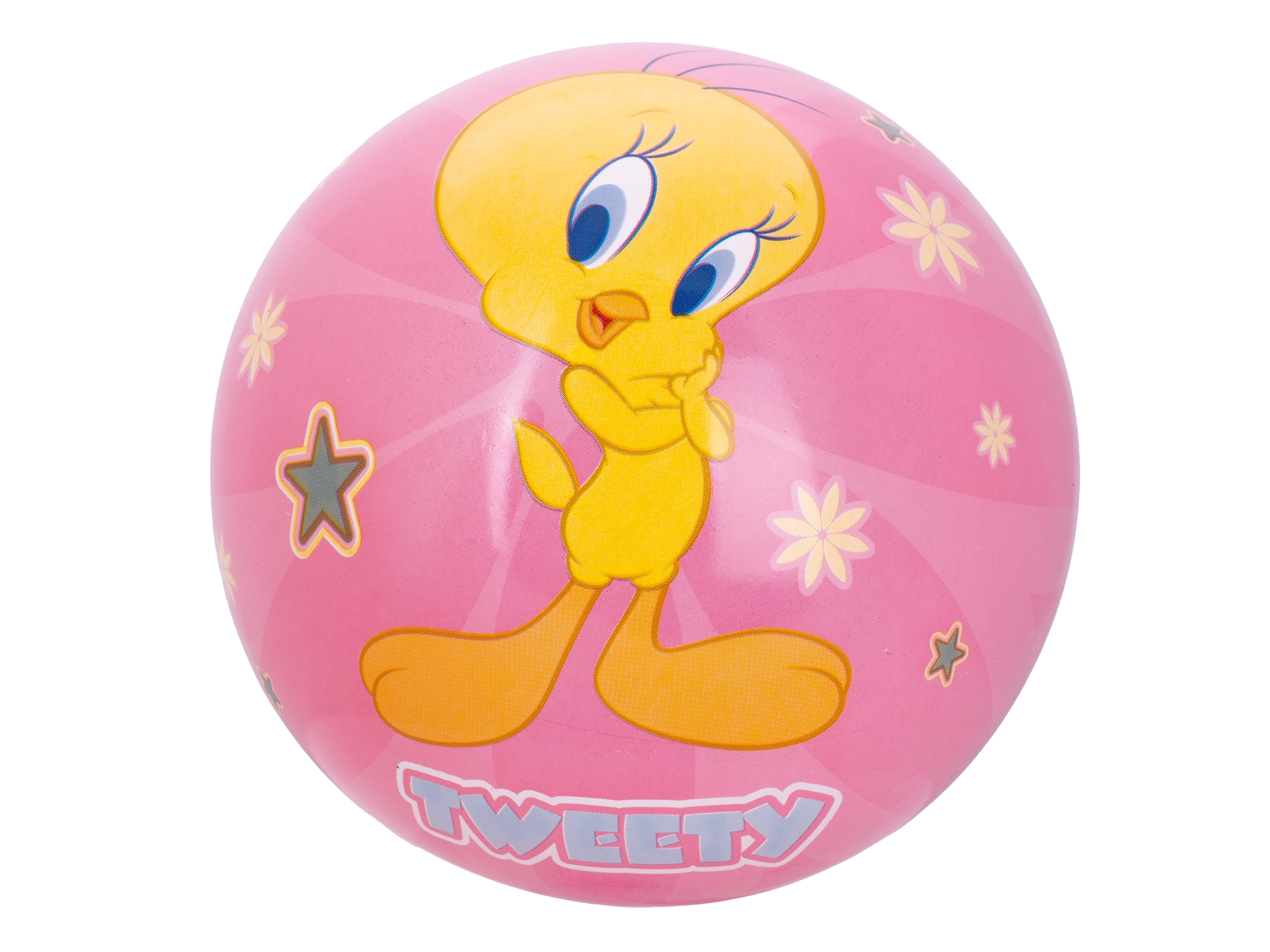 Allegro pallone per bambini con motivo LOONEY TUNES Tweety dal diametro di 23 cm, ideale per i più piccoli a partire da 10 mesi. Leggero e facile da afferrare, favorisce lo sviluppo della motricità e della coordinazione. Realizzato in plastica resistente, adatto per giocare in casa e all’aperto. La pratica confezione in rete facilita il trasporto e la conservazione.