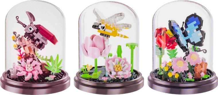 Creativo set di costruzione per bambini dai 6 anni che permette di assemblare quattro tipi di insetti con un fiore – farfalla, ape, coleottero e libellula. Il set da 253–281 pezzi sviluppa motricità fine, pensiero logico e pazienza. Inclusa una copertura trasparente antipolvere per esporre facilmente il modello finito con dimensioni di circa 11 × 8,6 cm.