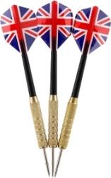 Il set di freccette include tre freccette con robusti punte in metallo e alette attraenti Union Jack, che aggiungono stile ai vostri giochi. Le freccette sono progettate per soddisfare sia i giocatori amatoriali che quelli professionisti. Le aste e alette intercambiabili permettono una facile personalizzazione delle vostre esigenze.