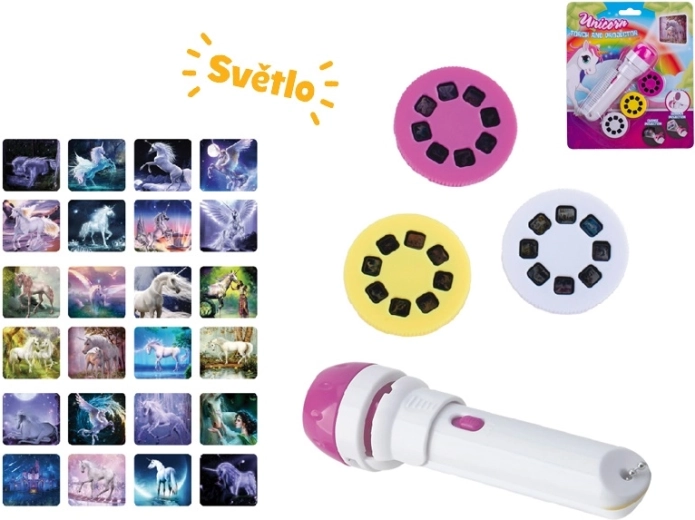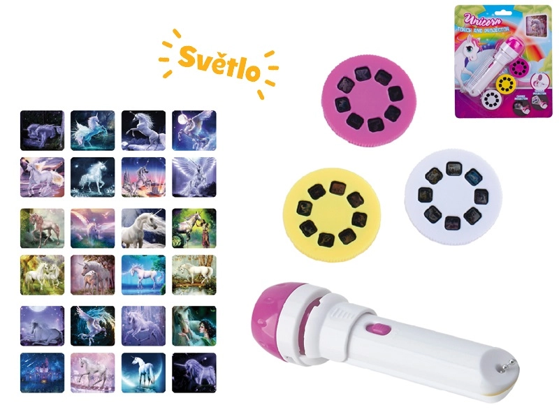 Scopri il magico mondo della fantasia con la torcia proiettore Unicorn, che proietta fino a 24 immagini di unicorni su pareti o soffitto. Il design compatto di 11,5 cm, il facile utilizzo e le batterie incluse la rendono il giocattolo ideale per bambini dai 3 anni. Oltre al proiettore, funziona anche come pratica torcia per avventure serali.