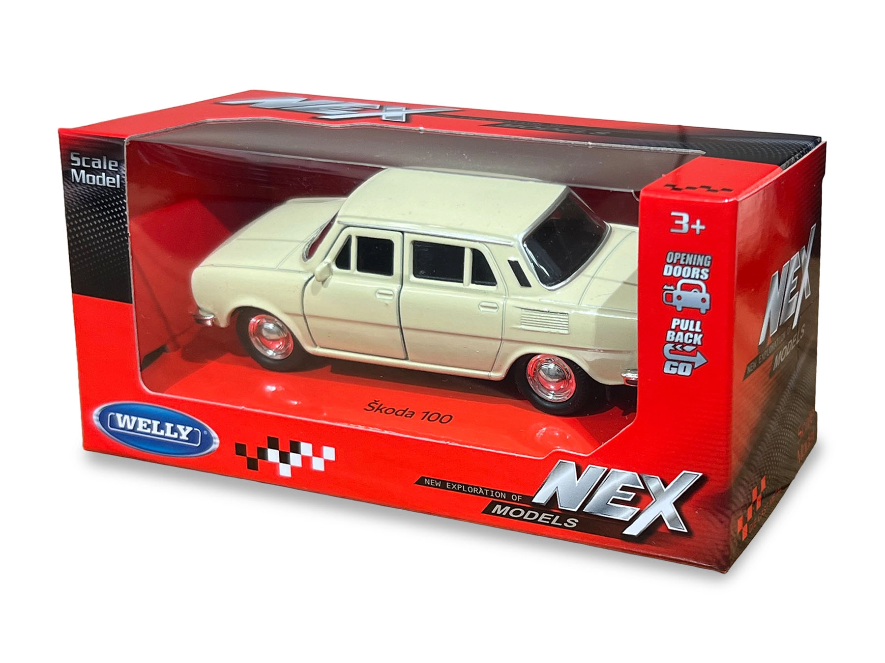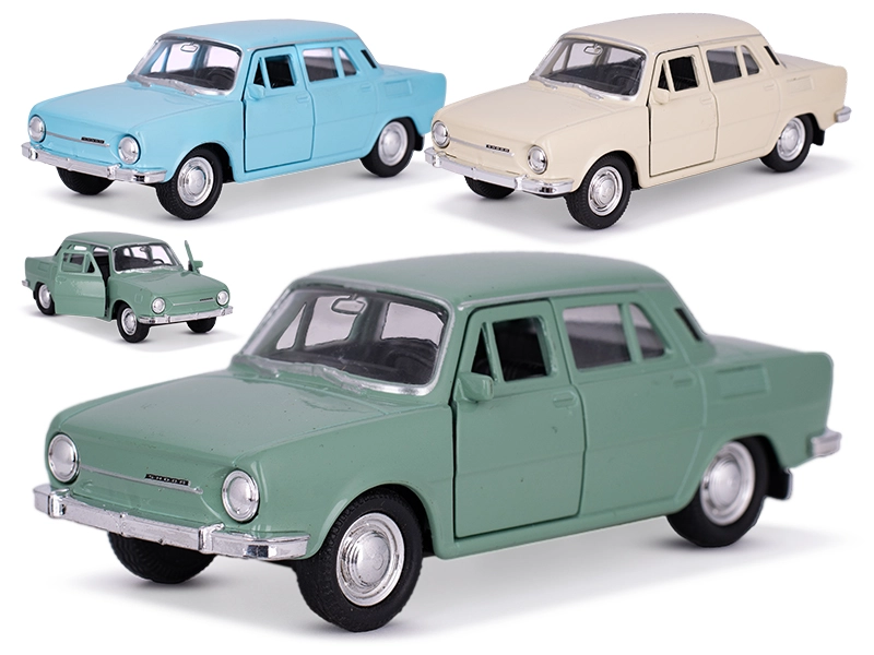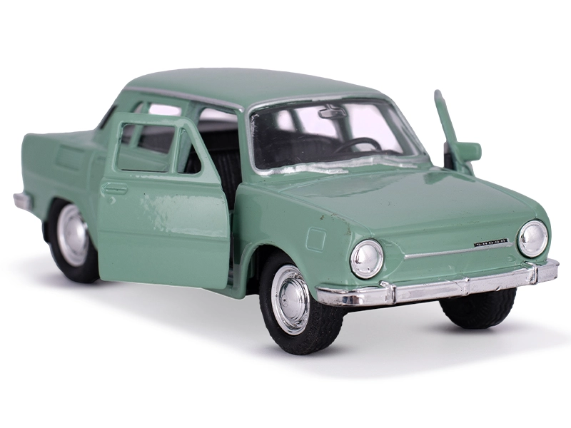 Il modello in metallo della Škoda 100 è una replica accurata della leggendaria berlina cecoslovacca. Grazie alle proporzioni realistiche, ai dettagli cromati e ai finestrini trasparenti con interni, fa un’ottima figura sia sullo scaffale che durante il gioco. La funzione integrata di retrocarica aggiunge dinamica al divertimento: basta tirare indietro e rilasciare.