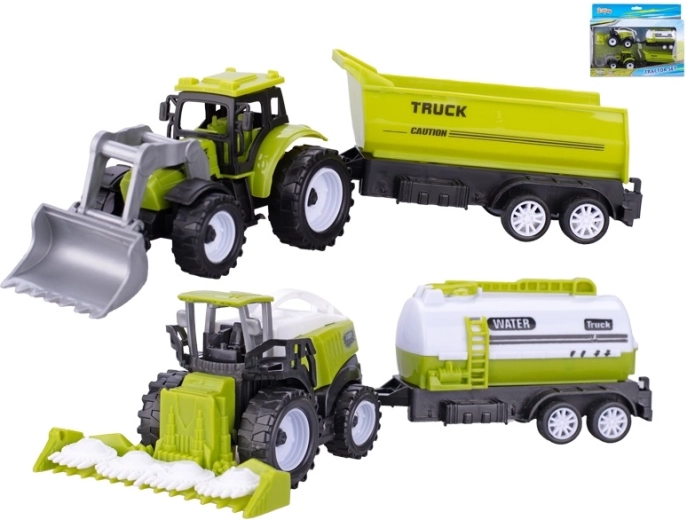 Questo set accattivante combina un trattore e una mietitrebbia dettagliati, ciascuno con il proprio rimorchio. Grazie al meccanismo a ruote libere, i veicoli sono facili da controllare e scorrono fluidamente su qualsiasi superficie. I bambini possono creare le proprie storie di fattoria, trasportare carichi e scoprire il mondo delle macchine agricole.