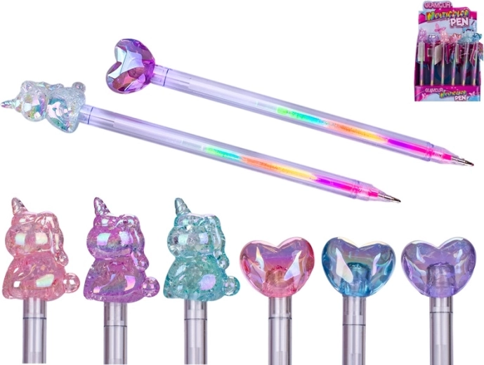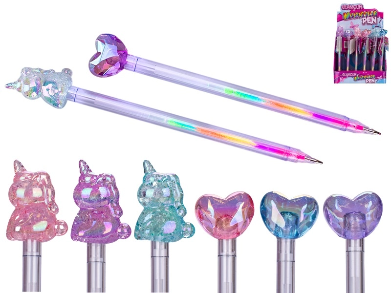 La stilosa penna multicolore GLAMOUR unisce divertimento e praticità per scuola e ufficio. Grazie a più ricariche colorate in un’unica penna puoi cambiare colore in base all’umore con un semplice clic. La forma ergonomica garantisce una scrittura confortevole anche durante un uso prolungato e il design accattivante con cuore o unicorno conquista sia bambini che adulti. Adatta ai bambini dai 3 anni.
