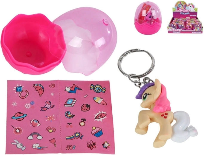 Il grazioso portachiavi a forma di unicorno farà felici piccoli e grandi fan delle creature magiche. Offre una dimensione compatta di 5 cm, è realizzato in plastica resistente e viene fornito in un ovetto con adesivi per un divertimento ancora maggiore. Sono disponibili sei varianti di colore, così ognuno può trovare la sua preferita. Ideale come piccolo regalo o accessorio da collezione per bambini dai 3 anni in su.