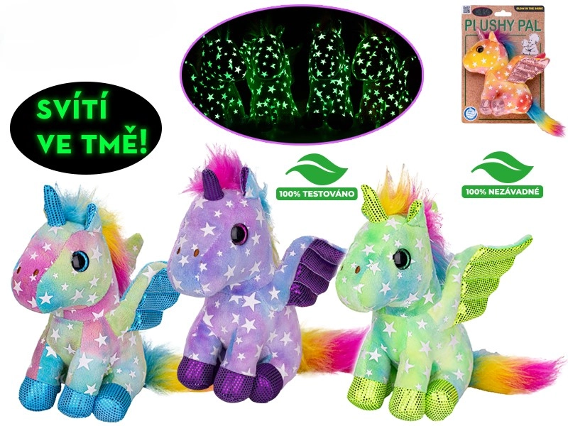 Accogli in cameretta una creatura magica che illumina le sere e la fantasia dei bambini. Questo morbido unicorno da 15 cm ha ali scintillanti e può brillare delicatamente al buio, aiutando i piccoli a superare la paura del buio e a dormire più serenamente. È realizzato in morbido peluche piacevole al tatto ed è adatto ai bambini 0+.