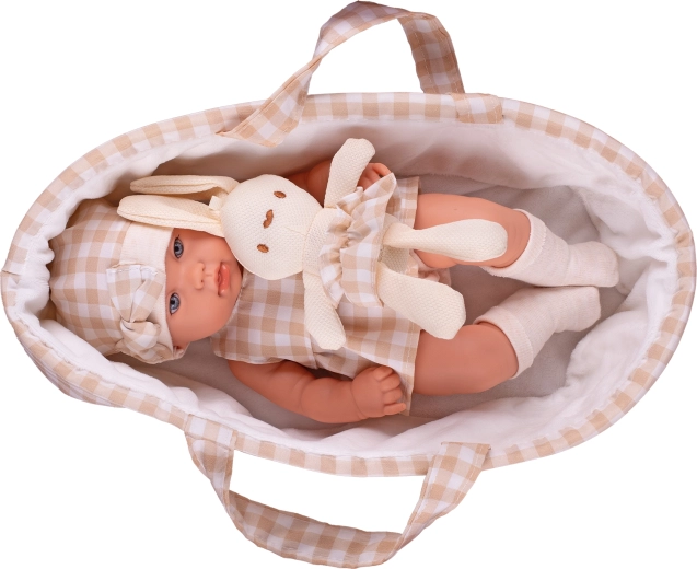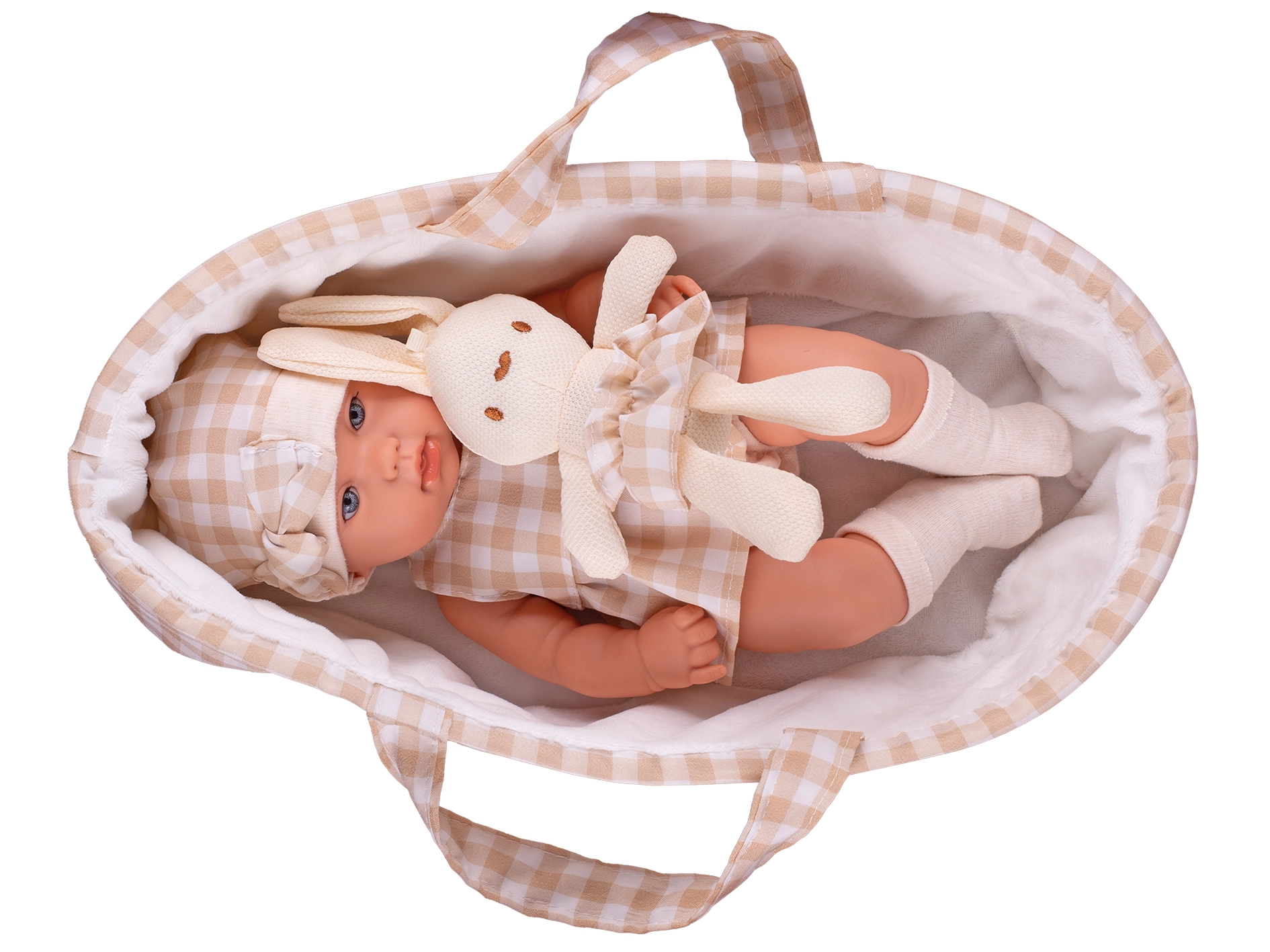 Una dolcissima bambola di 33 cm con corpo rigido e dettagli realistici che farà felice ogni piccolo caregiver. Ha occhi aperti, la bocca leggermente socchiusa ed è coordinata in eleganti tonalità beige. Include un seggiolino e un coniglietto di peluche per sviluppare empatia e fantasia. Fornita in una scatola regalo, ideale come dono.