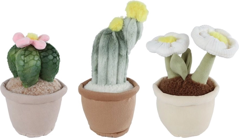 Puoi scegliere tra tre varianti uniche – fiore bianco, cactus con fiori gialli e cactus con fiori rosa. Grazie alle dimensioni compatte di circa 18–25 cm sono perfette per una mensola, la scrivania o anche per il lettino. E poiché non hanno bisogno di essere annaffiate, sono l’alternativa ideale per chi desidera ravvivare lo spazio senza pensieri.