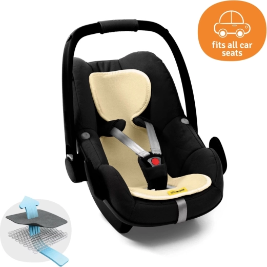 Inserto traspirante AeroMoov per seggiolini auto 0–13 kg garantisce al tuo bebè comfort tutto l’anno. Grazie alla struttura 3D a nido d’ape permette una massima circolazione dell’aria, riduce la sudorazione e mantiene una gradevole temperatura corporea. L’inserto è morbido, piacevole al tatto e all’esterno in cotone biologico, lavabile a 40 °C.
