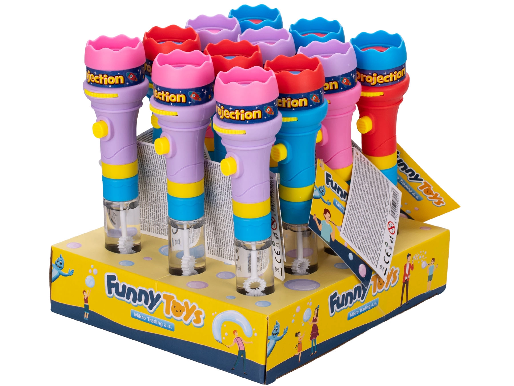 Scopri la magia delle bolle e degli effetti luminosi con il bolle di sapone con proiettore. Questo ingegnoso giocattolo 2 in 1 permette ai bambini di creare splendide bolle e allo stesso tempo proiettare fino a 8 immagini diverse grazie alla luce integrata. Il design compatto lungo 20,5 cm garantisce un facile trasporto e un gioco spensierato in casa o in giardino.