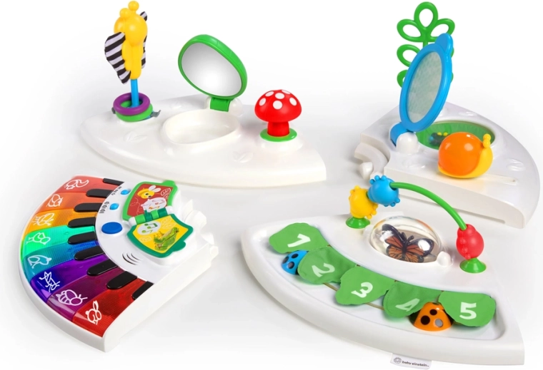 Il centro attività Baby Einstein Around We Grow 4 in 1 si adatta a ogni fase di sviluppo. Dal girello stazionario con seduta al tavolo sensoriale, dalle stazioni di gioco rimovibili alla superficie piana per le attività creative: tutto in un’unica soluzione intelligente. Il bambino può esplorare oltre 15 elementi di gioco, sviluppare la motricità fine, comprendere il nesso causa-effetto e imparare colori e nomi degli animali in inglese, francese e spagnolo.