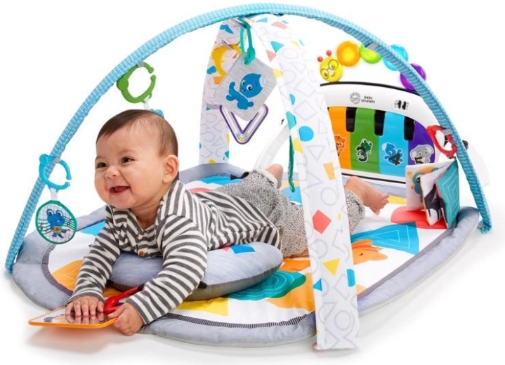 Goditi momenti di gioco con il tappeto attività 4 in 1 Kickin' Tunes di BABY EINSTEIN, che cresce con il tuo bambino. Il pianoforte Magic Touch interattivo reagisce al tocco delle dita e ai calci senza pulsanti, offre oltre 70 melodie e suoni e, insieme a 7 giochi rimovibili, favorisce lo sviluppo sensoriale, la motricità fine e grossolana e il divertimento durante il gioco supino, il tummy time, la posizione seduta e il gioco fuori dal tappeto.