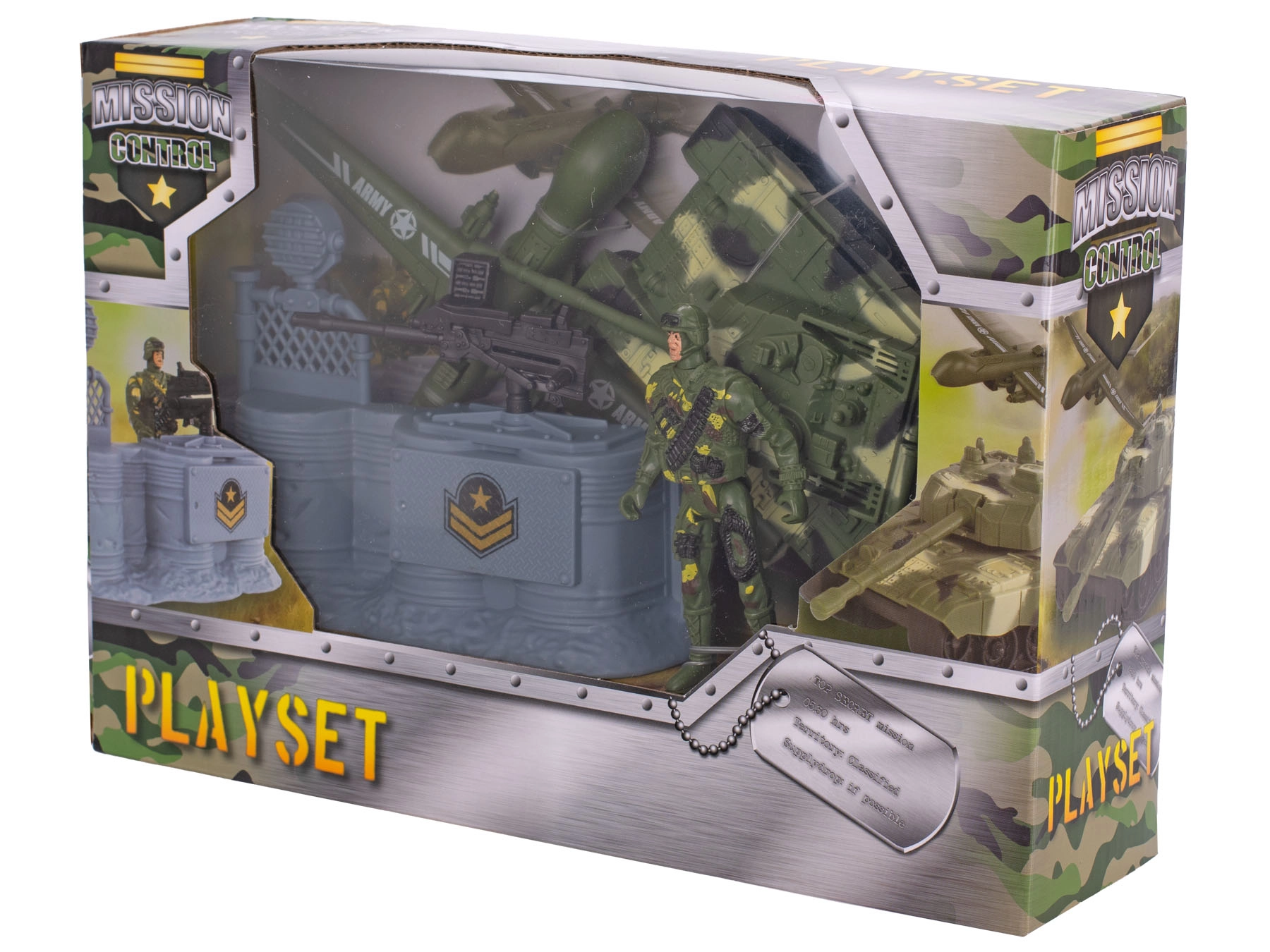 La confezione include un carro armato dettagliato, una figurina di soldato, una postazione d’artiglieria e un posto di comando – tutto ciò di cui i bambini hanno bisogno per creare un emozionante ambiente di battaglia. La confezione compatta dalle dimensioni 29,5 × 20 × 8,5 cm facilita riporre e trasportare.