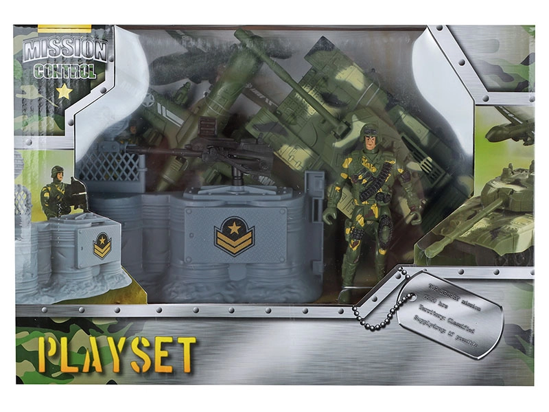 - Carro armato (18,5 cm), figurina di soldato, postazione d’artiglieria, posto di comando